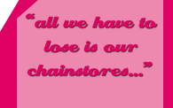 banner reading ‘all we have to lose is our chainstores…’